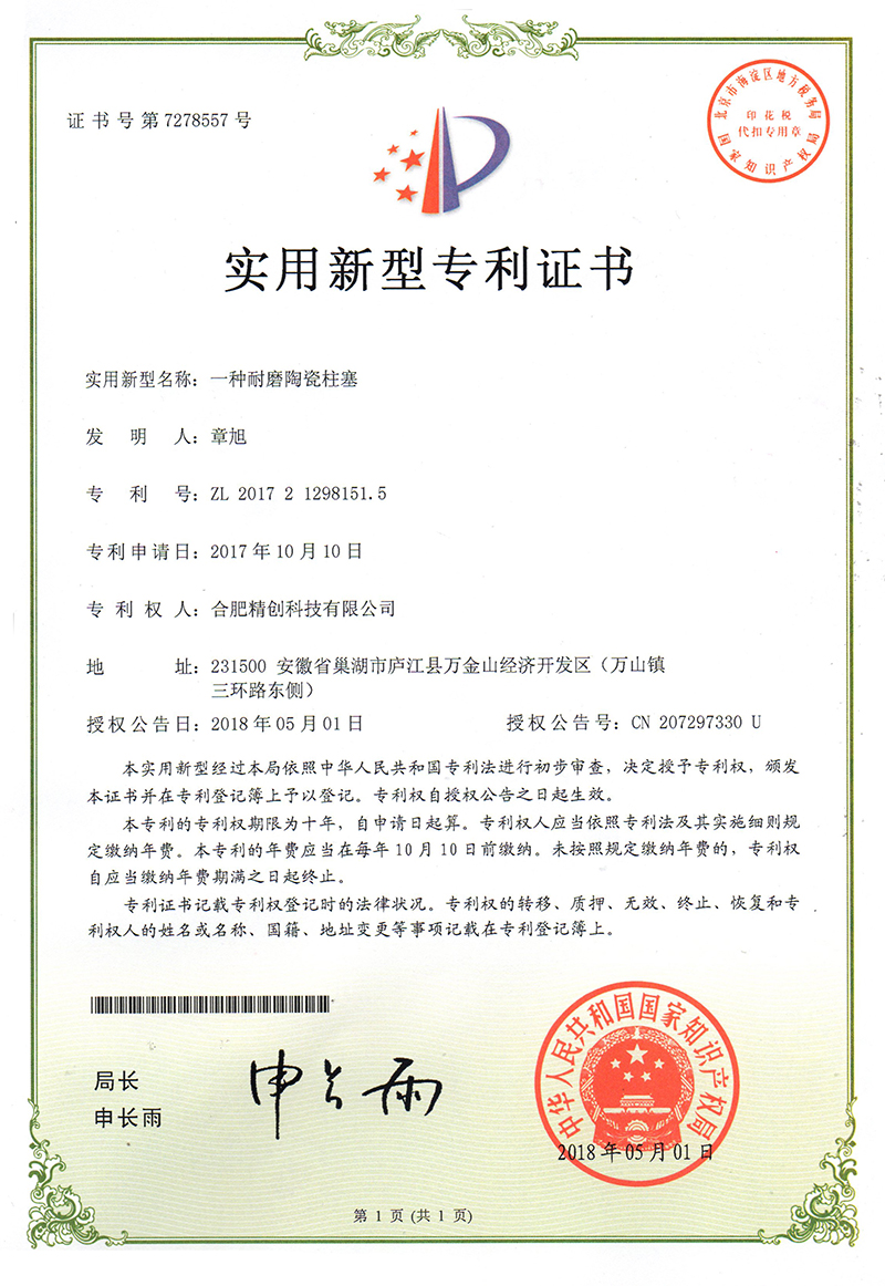 (2018實用新型)一種工作面全陶瓷的陶瓷柱塞